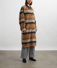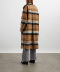 DETAILS Striped wool blend coat Longline Relaxed fit Dropped shoulders Long raglan sleeves Leather collar Front button fastening Buttoned cuffs Chest patch pockets Lower slash pockets Rounded hem with slits Unlined SIZE & FIT Model is 178cm/5'10"; Chest: 81cm; Waist: 66cm; Hip: 91cm and wears a size 8 COMPOSITION & CARE 74% Wool; 23% Polyamide; 3% Other fibres Dry clean