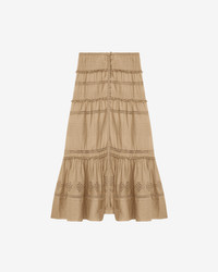 Skirt in elaborate cotton voile Fitted waistband Buttoned front Slit in front Lace, openwork English embroidery, pleats, and gathers Half-lined Long flared cut Style: JU0282FAC1J15E67LK DUSTA 100% cotton