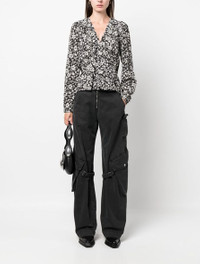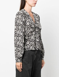 Viscose blouse with floral print. Draped details. Buttons on the front. product code: HT0221FAA3J33EBKWH COMPOSITION 100% viscose, 100% silk MADE IN INDIA