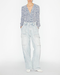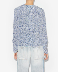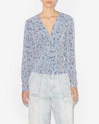 100% viscose Printed viscose crepe top with long sleeves V-neckline Pleat details on the front Buttoned cuffs Style: HT0221FAB1J02E30BU EDDY