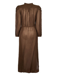ruffled button-front maxi dress Highlights - Dark brown - Ruffled neckline - Button placket - Long sleeves - Gathered bodice - Drawstring waist Imported Composition Cotton 80%, Viscose 20% Washing instructions Read Manufacturer Guidelines