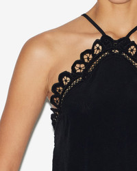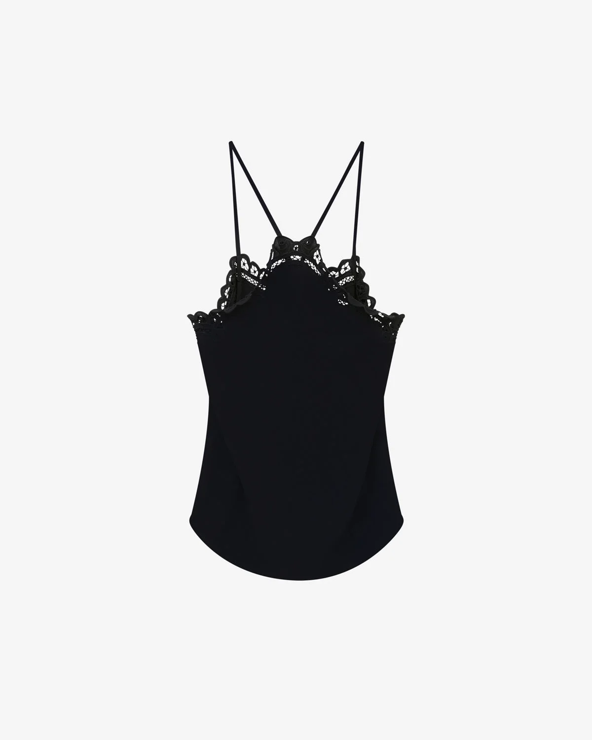 Top in plain-colored crepe with English embroidery Thin straps Elaborate lace finishes Rounded hem Fitted and flowing cut Style: HT0444FA-B3J05E ELVA 100% viscose