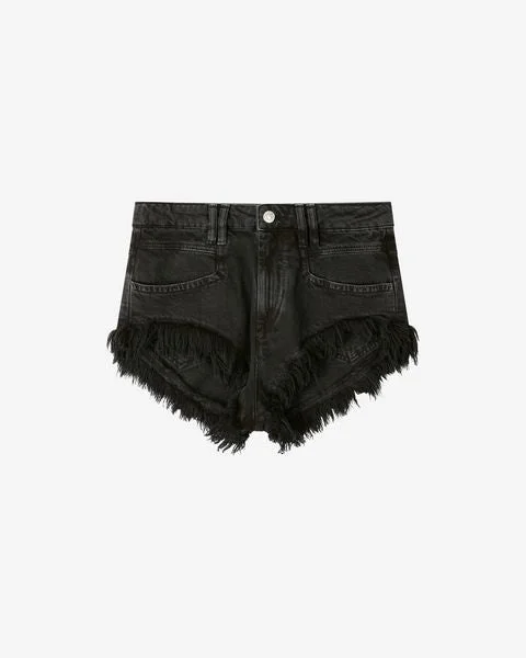 100% cotton Black denim mini shorts Side pockets Front zip and snap button fastening Style: SH0033FA-A1H02E ENEIDAO