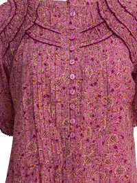 Celyana pleated floral-print mini dress Highlights - Pink - Floral print - Pleated - Button front - Short sleeves - Frilled neckline Imported Composition Cotton 100% Washing instructions Read Manufacturer Guidelines