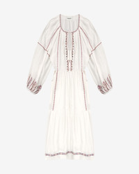 Gauze dress with graphic style embroidery Round neckline with strings Slit in front with hook Long raglan sleeves Tapered cuffs Fitted waist with drawstrings Long strings with tassels Matching lining Long flowing cut Style: RO0673FAC1J11EECOE FLORENZA 100% cotton