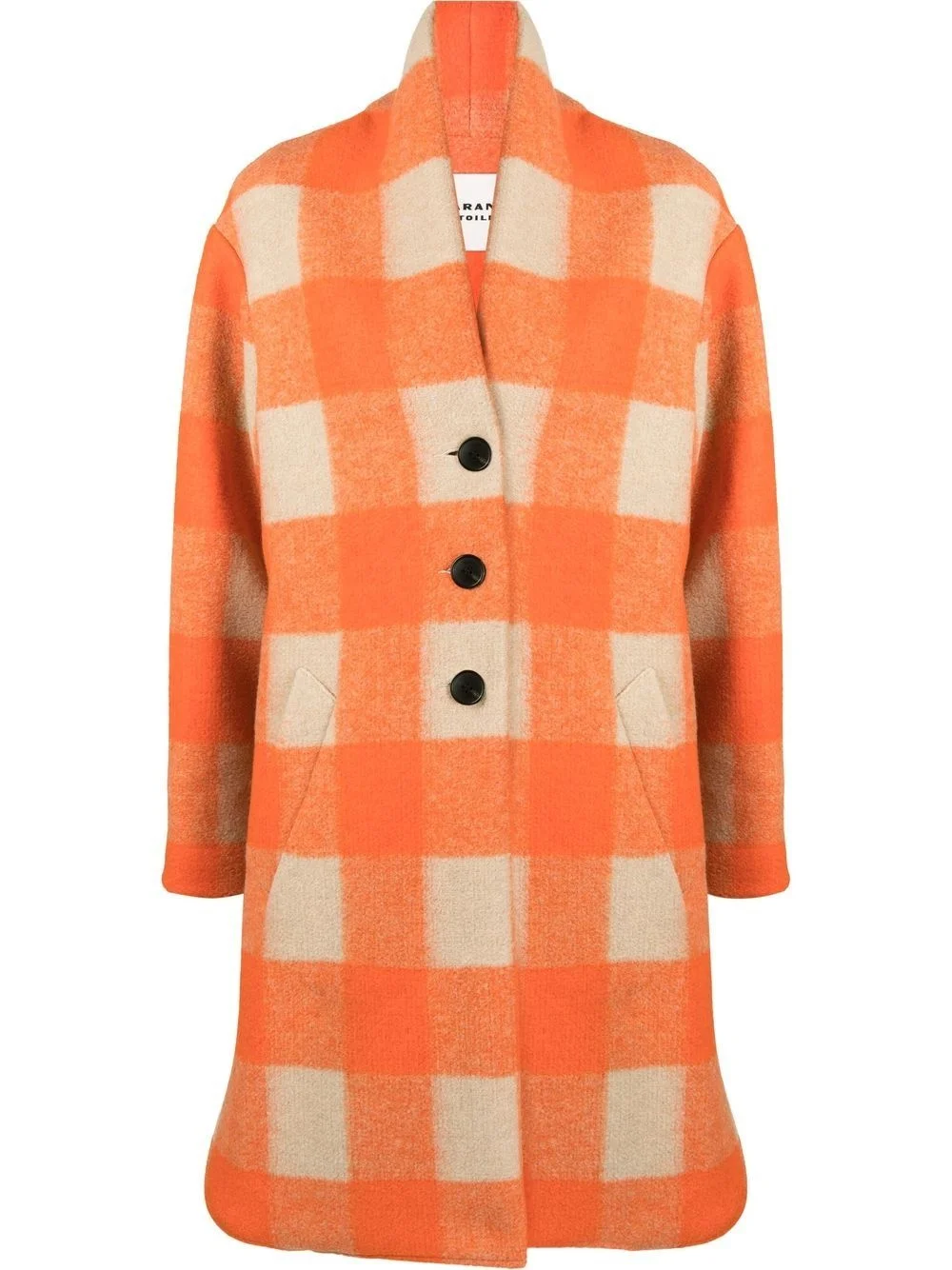 Gabriel checked coat Constructed in a bright orange check pattern, this coat from Isabel Marant Etoile is cut in a classic V-neck design for a statement look. Highlights - Carrot orange - Cotton - V-neck - Front button fastening - Long sleeves - Slip pockets to the sides - Mid-length - Straight hem Imported Composition Lining: Cotton 100% Outer: Polyester 58%, Virgin Wool 27%, Acrylic 15% SIZE & FIT Model measurements Height 5 ft 10 in(1.79 m) Bust/Chest 31.49 in(80 cm) Hips 35.03 in(89 cm) Waist 23.62 in(60 cm) Measurement LENGTH 38.97 in(99 cm) SLEEVE LENGTH 22.44 in(57 cm) FittingInformation This piece fits true to size. We recommend you get your regular size Cut for a loose fit Made with a mid-weight non-stretch fabric Washing instructions Dry Clean Only