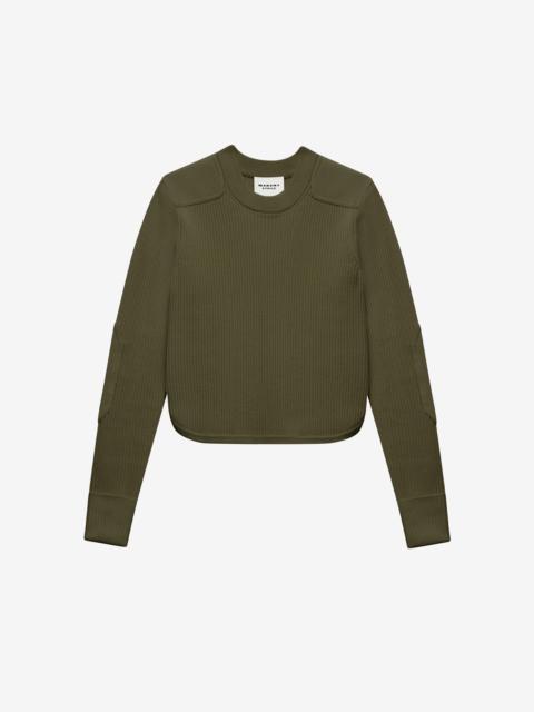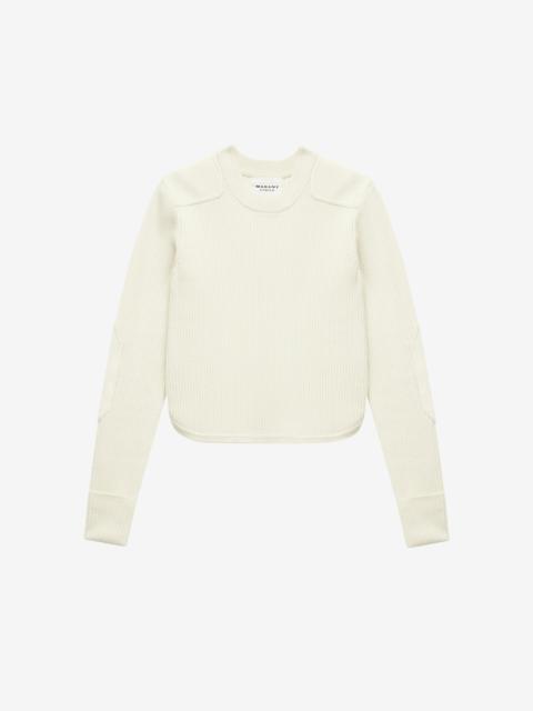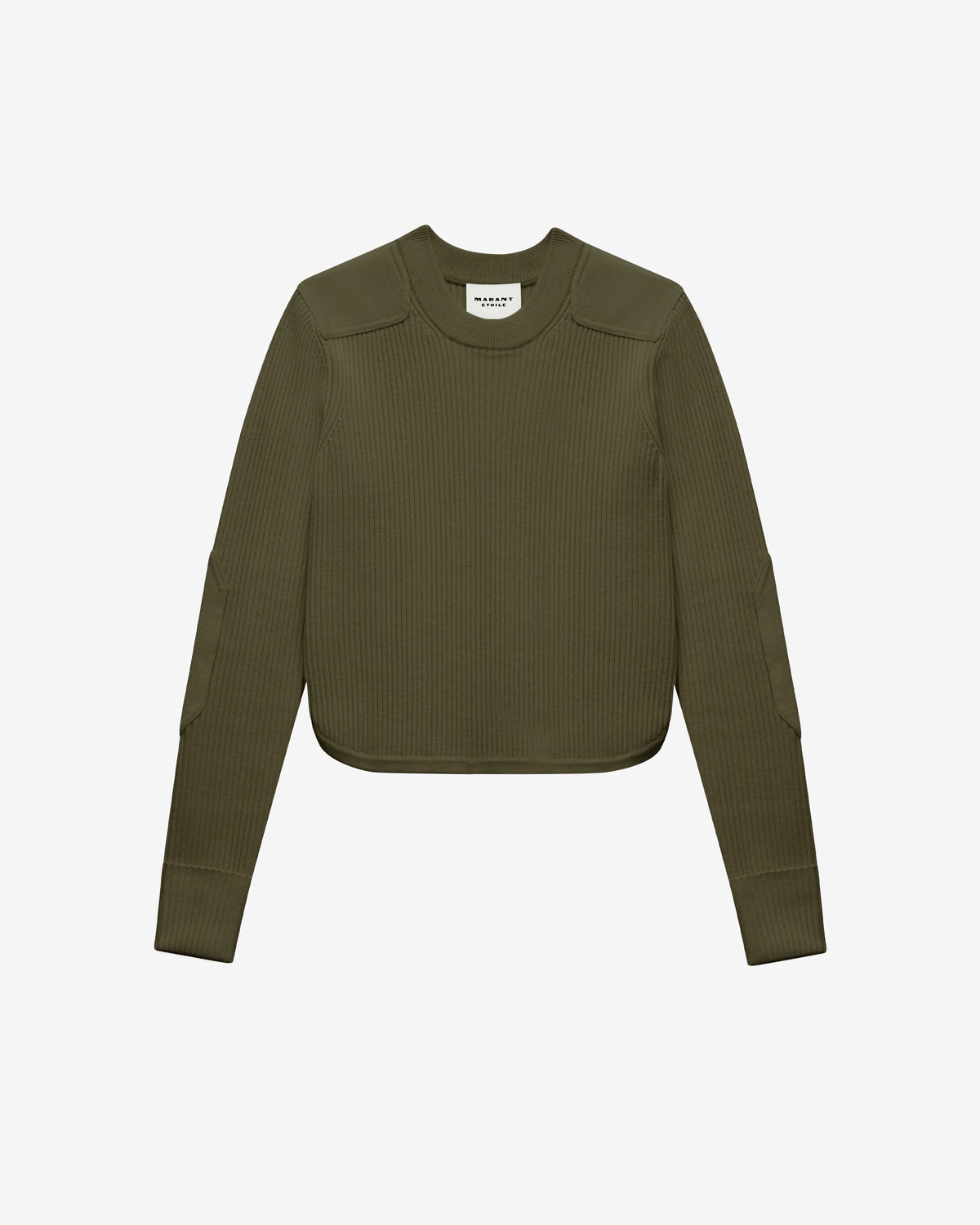 Sweater in plain-colored merinos wool with yokes Round neckline Long turn-up sleeves Matching yokes Ribbed finishes Straight cut Style: PU0515FA-B3L07E GABYNE 93% merinos wool, 6% polyamide, 1% elastane
