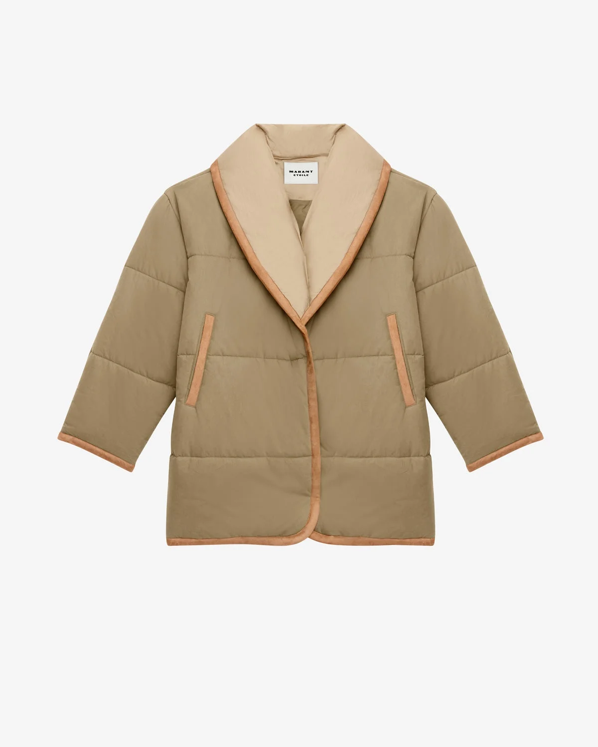 Quilted cotton blend down coat Shawl collar Long sleeves Done up with snap buttons Piped side pockets Suede bias finishes Matching lining Medium length Style: MA0372FAC1C01E67KI GALLY 100% cotton