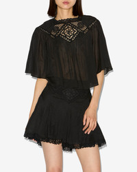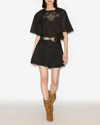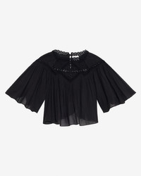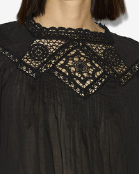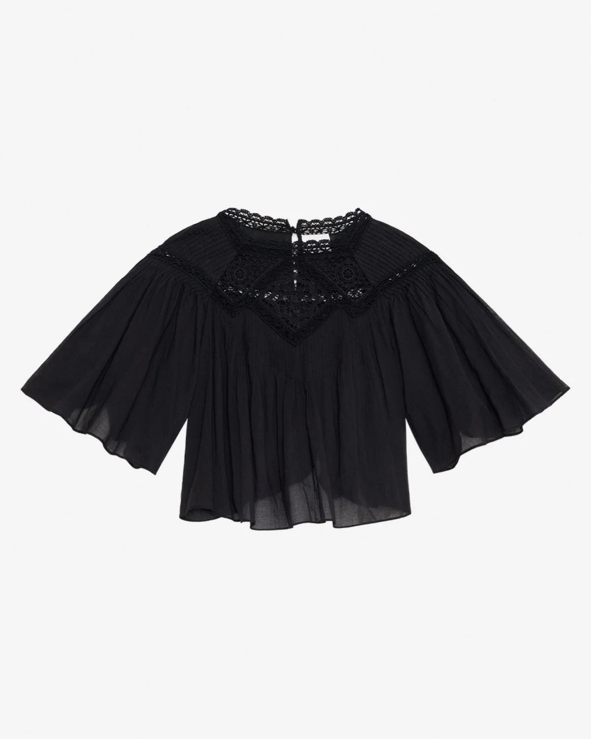 Plain-colored cotton voile and lace top Square neckline with lace trim Short loose sleeves Done up in back with a buttoned slit Short and flared cut Style: HT0664FAC3J05E01BK GARIA 100% cotton
