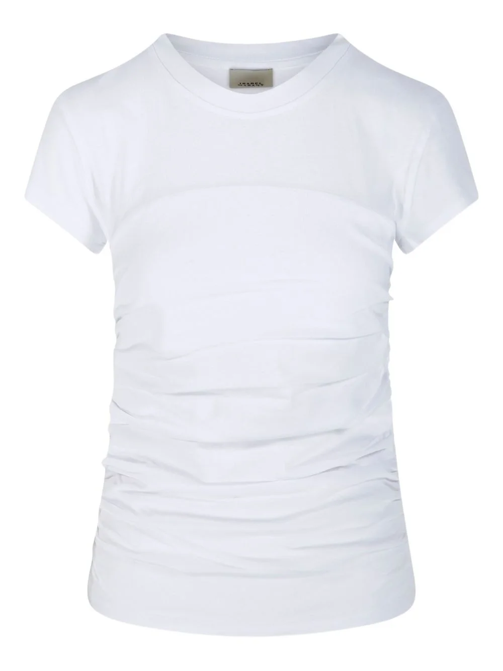 gathered short-sleeve T-shirt Highlights - White - Short sleeves - Round neck - Gathered detail - Straight hem Imported Composition Cotton 100% Washing instructions Read Manufacturer Guidelines