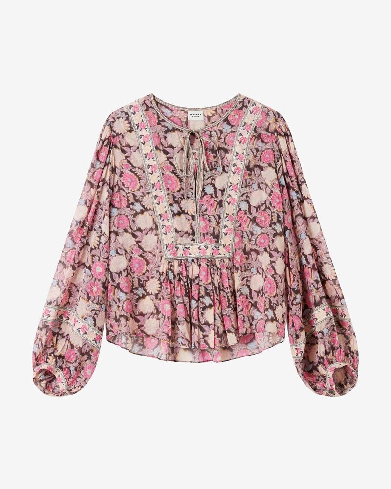 Floral printed cotton top with long sleeves Collar with laces Reference: HT0024FA-A1J50E GAYLE 100% Cotton FITTING ADVICE Fits true to size The model is wearing a size FR 38 and she is 1m77 (5'9")
