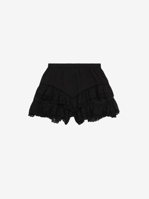 Frilly lace and cotton voile shorts Elastic waist Rows of frills Pintucks Lace braid finishes Short and flared cut Style: SH0242FAC3J05E20WH GEANA 100% cotton