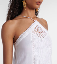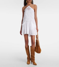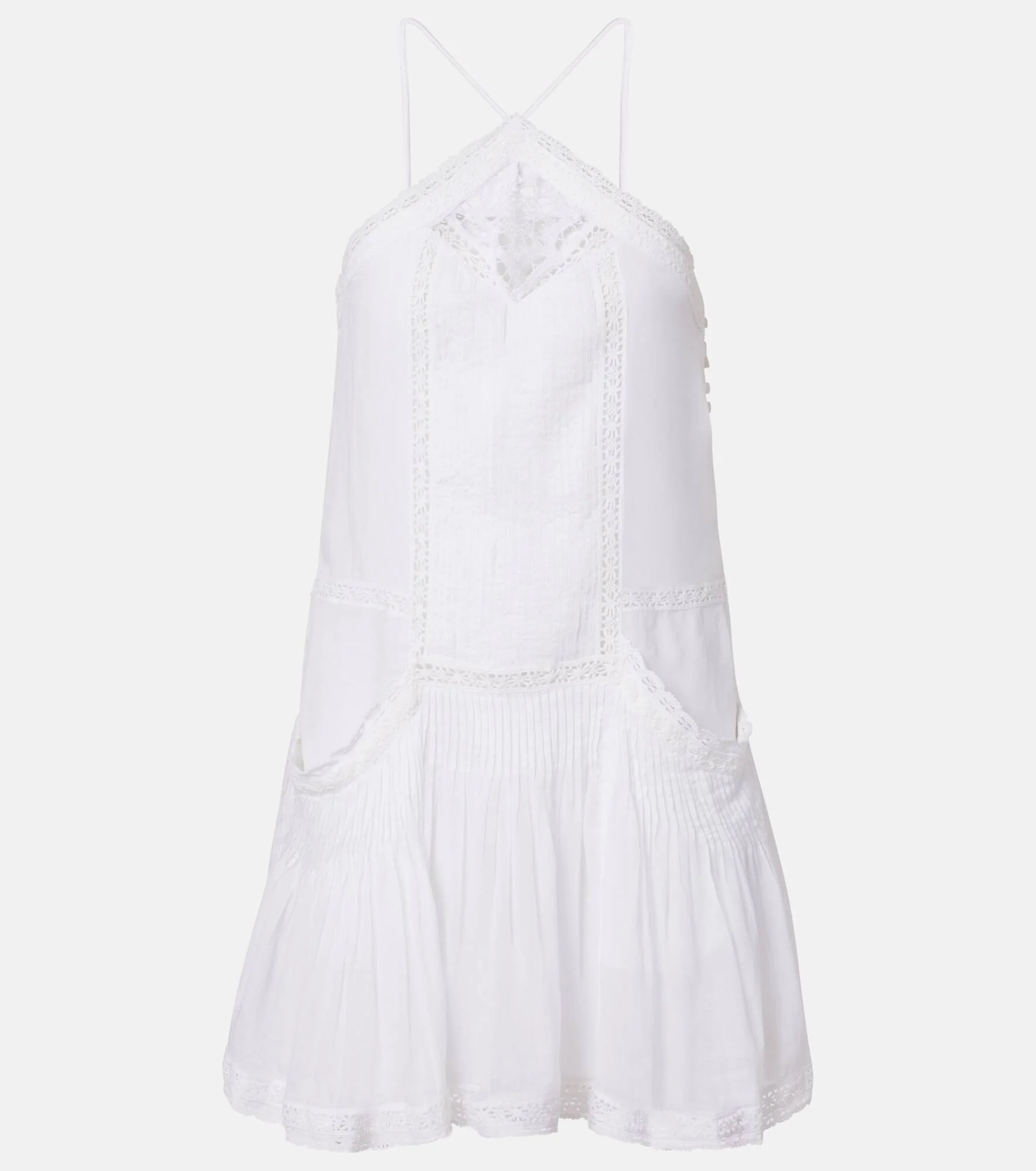 Hailing from Paris, Marant Etoile captures the art of French nonchalance through breezy yet polished staples.The Geraldin sleeveless minidress is crafted from lightweight cotton, featuring delicate lace trims and a flattering halter neckline. Product Details - Material: 100% cotton (organic) - Care instructions: dry clean - Made in India - Designer color name: White - Item color: white - Trim: 100% cotton (organic) - Lining: 100% viscose - Embroidery: 100% polyester - Closure: button fastening - Pockets: patch pockets - Fully lined - Item number: P01074536 Size & Fit - True to size - Semi-sheer - Cinched waist - Non-stretchy fabric - The model seen in the picture is 178cm-5'10" and wearing a size FR 36