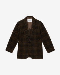 Checkered virgin wool suit jacket Lapel Long sleeves Straight buttoned cuffs Chest pocket Piped side pockets with flaps Buttoned front Half-lined Straight cut Style: VE0522FBC3D02E67KI GESINA 100% virgin wool