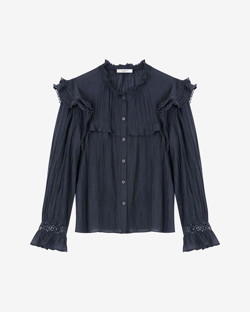 Lace shirt with long sleeves Slightly high neck Embroidery lace design Ruffles and smocks Puff sleeves The model is wearing a size FR 38 and she is 1m77 Reference : HT2375-22A039E GILATEDY 67% Cotton, 33% Viscose FITTING ADVICE fits true to size