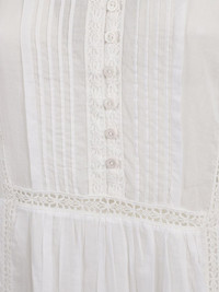pleated lace-inserts day dress Highlights - White - Pleated bodice - Lace inserts - Button front - Long sleeves - Gathered skirt Imported Composition Cotton 100% Washing instructions Read Manufacturer Guidelines