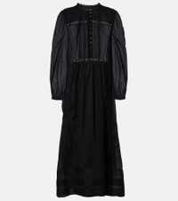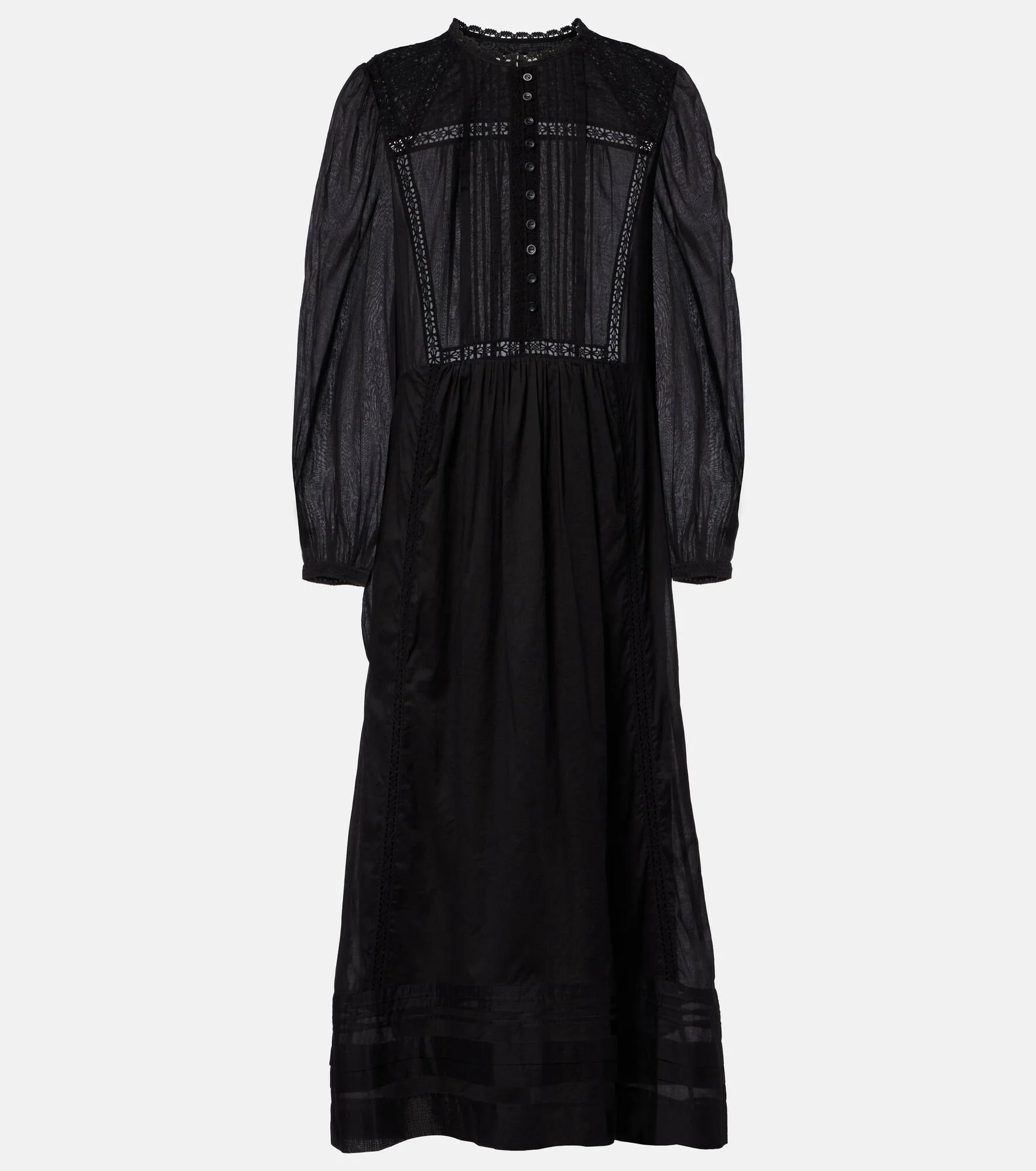 Marant Etoile captures the art of French nonchalance through breezy yet polished staples. The Gisela maxi dress is crafted from cotton with delicate lace trims, a flowing silhouette, and a partially buttoned front that adds a chic touch. Product Details - Material: 100% cotton (organic) - Care instructions: dry clean - Made in India - Designer color name: Black - Item color: black - Trim: 100% cotton (organic) - Lining: 100% viscose - Embroidery: 100% polyester - Closure: partially buttoned front, zipped side - Cuff: buttoned - Half-lined - Item number: P01074533 Size & Fit - True to size - Sheer - Cinched waist - Non-stretchy fabric - The model seen in the picture is 178cm-5'10" and wearing a size FR 36