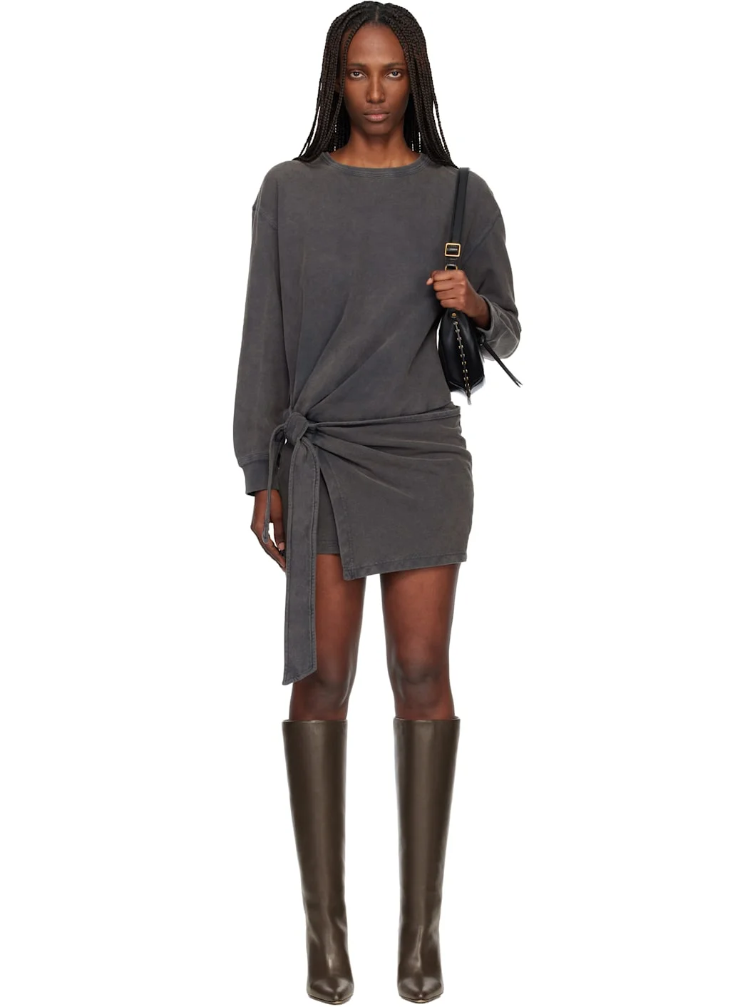 French terry minidress. · Fading throughout · Wrap construction · Rib-knit crewneck and cuffs · Gathering and self-tie fastening at side · Dropped shoulders · Logo embroidered at back collar · Inverted pleat at back Supplier color: Faded black 100% cotton. Made in Portugal 261599F052001