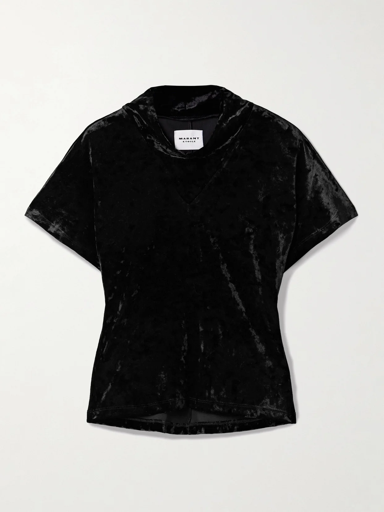 Marant Etoile's 'Hailey' T-shirt is cut for a slim fit from plush black velvet. It has a subtly draped neckline and flutter sleeves. Style yours as part of an all-black outfit.