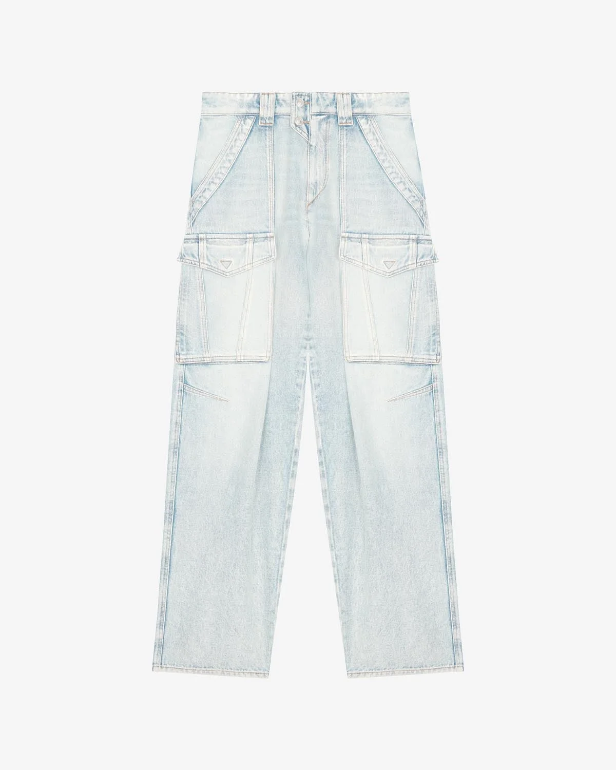 100% cotton Mid-rise denim pants Loose fit Two front cargo pockets Rear patch pockets Zipper and button fastening Belt loops Tone-on-tone stitching Logo jacron on the back Style: PA0280FA-B1H02E HEILANI