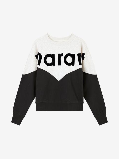 Cotton sweatshirt with logo Round neckline Long raglan sleeves Contrasting "Marant" logo printed on the front Ribbed finishes Relaxed fit Style: SW0006FAA1M08E10LC MILLYNY 88% cotton (1), 12% polyester (2) Care & Sustainability Machine wash on a gentle cycle, inside out and at a maximum temperature of 30°C For more details, see the instructions on the composition label the history and environmental impact of this product