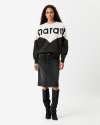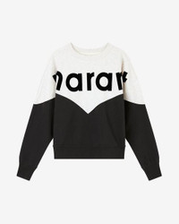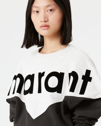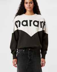 88% organic cotton, 12% recycled polyester Two-tone cotton sweatshirt with long sleeves Round neckline Contrasting flocked “Marant” logo on the front Ribbed edging finishes Loose cut Style: SW0006FA-A1M08E HOUSTON