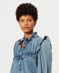 100% cotton Denim shirt with long sleeves Ruffles and smocks Style: CH0005FB-A3H05E IDETY