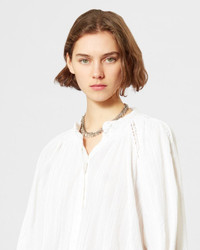 White cotton shirt with long sleeves Button closure Embroidered lace design Reference: CH0082FA-A3J09E IMAYAE 90% Cotton, 10% Viscose FITTING ADVICE Fits true to size The model is wearing a size FR 38 and she is 1m77