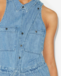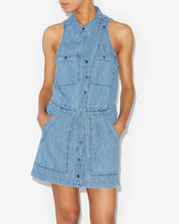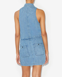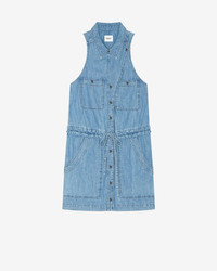 100% Cotton Blue denim dress without sleeves Side, back and chest pockets Front button closure Drawstring at waist Style: RO0332FAB1H04E30BU INES
