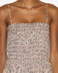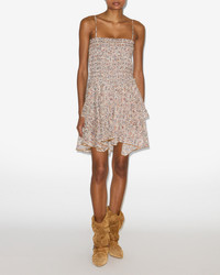 Smocked pointed lightweight cotton tapestry print dress Thin adjustable straps Smocked fitted bustier Skirt with asymmetrical pointed frills Short and flared cut Style: RO0246FAC3J06E23EC ANKA 100% cotton