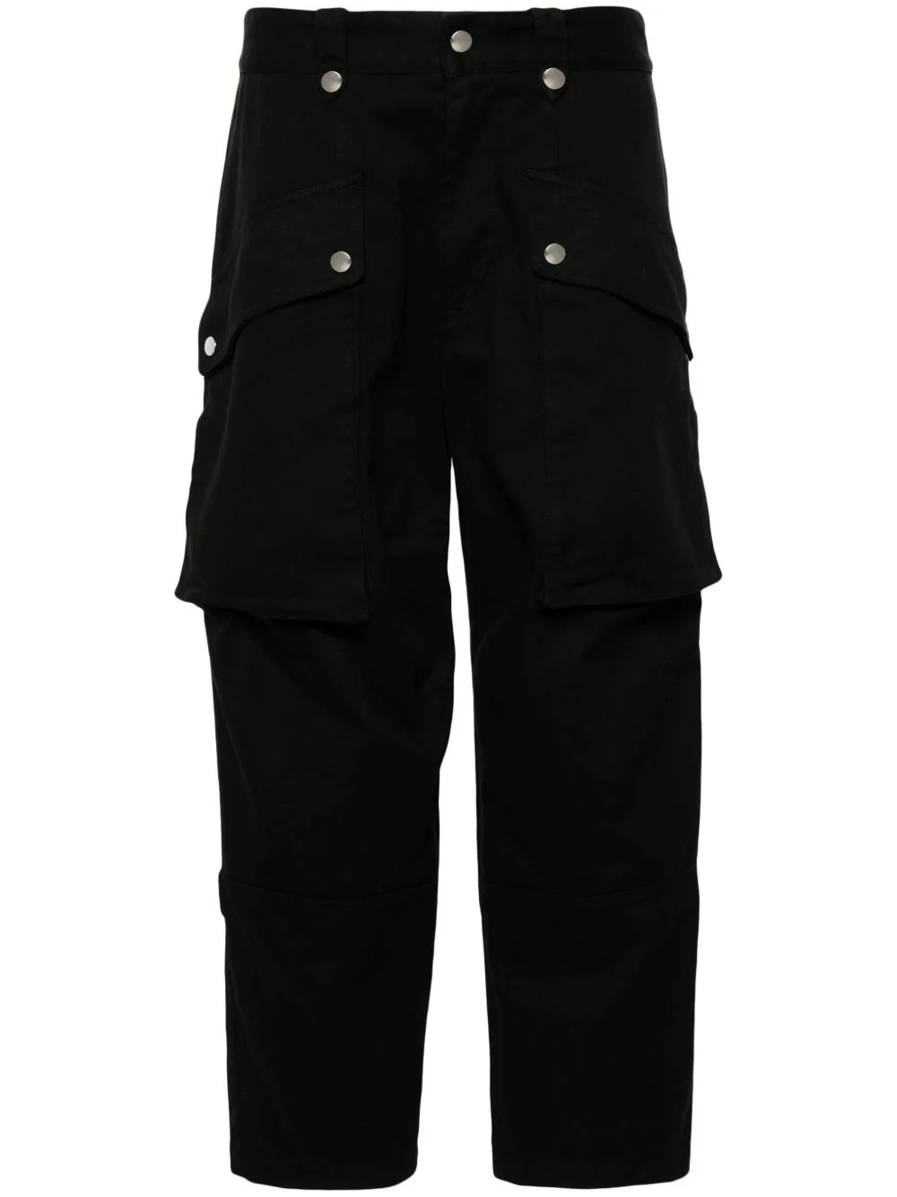 Jannick cargo trousers Highlights - Black - Cotton - Gabardine weave - Belt loops - Front press-stud and zip fastening - Tapered leg - Two side cargo pockets - Two rear zip-fastening pockets - Straight hem Imported Composition Lining: Cotton 100% Outer: Cotton 100% SIZE & FIT Model measurements Height 5 ft 10 in(1.77 m) Bust/Chest 32.28 in(82 cm) Hips 35.03 in(89 cm) Waist 25.19 in(64 cm) FittingInformation Designed for a tapered fit, these trousers allow for a close fit at the waist and a loose unrestricted fit over the leg with a closer fit towards the ankle Made from a midweight non-stretch fabric This piece fits true to size – take your usual size Washing instructions Machine Wash