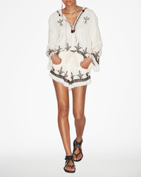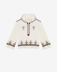 Gauze top with graphic style embroidery Round neckline with a hood Slit with hooks and pompoms Long sleeves Graphic style embroidery Fringed finishes Relaxed fit Style: HT0543FAC1J10E23EC KAMEYA 100% viscose