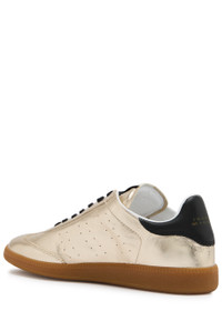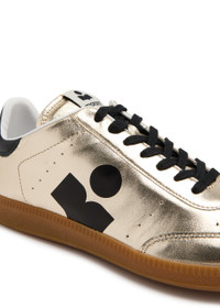 Info & Care Isabel Marant metallic leather sneakers Designer plaque at padded tongue, logo-printed side, perforated details, designer-stamped leather heel panel, padded ankle, textured rubber midsole, rubber sole, round toe Lace-up front Size & Fit Only available in full sizes, go up to the nearest whole size if you take a half size;
