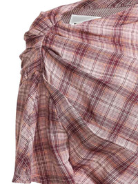 asymmetric-pleated blouse Highlights - Beige and pink - Plaid pattern - Asymmetric neckline - Short sleeves - Pleated detailing - Raw-edge finish - Side zip closure Imported Composition Cotton 100% Washing instructions Read Manufacturer Guidelines