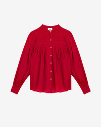 Blouse in gathered cotton voile Round neckline Pleated yoke on the top Long gathered sleeves Buttoned front Rounded hem Loose fit Style: HT0002FCB3J04E70RD PLALIA 80% cotton, 20% viscose
