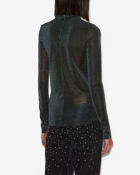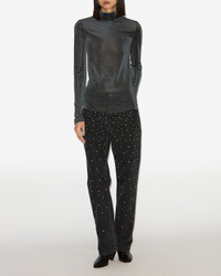 Slim Lurex jersey stand-up collar top Long sleeves Hidden zipper in back Fitted cut Style: HT0771FA-C3K05E JADIA 70% polyamide, 30% metallic fibers