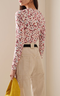 Isabel Marant's Étoile line reflects the Parisian designer's youthful spirit. This season's lineup features laid-back separates that are super stylish and, most importantly, easy to wear. Printed in florals, this long-sleeved v-neck top has a slim fit and twist front. Tuck into high-waisted pants with leather boots. PRODUCT DETAILS - Slip on - Composition: 95% viscose, 5% elastane - Dry clean only - Imported SIZE & FIT - Our model is 178cm / 5'10" and is wearing s FR 36 - Fits true to size, our fit specialist recommends taking your normal size - Designed for a slim fit