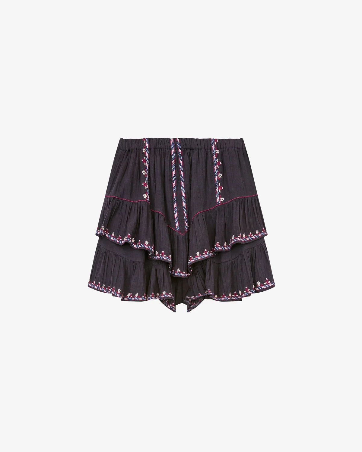 Frilly gauze shorts with graphic style embroidery Elastic waist Rows of frills Short and flared cut Style: SH0021FDC1J11EFNLI JOCADIA 100% cotton