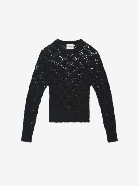 62% acrylic, 38% polyamide Ecru crochet sweater with long sleeves Round neck Graphic openwork knitting Style: PU0393FAB1L08E23EC JOEY