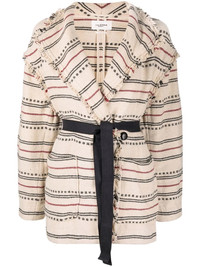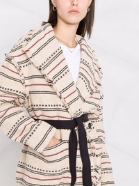 Josialo embroidered coat Cut to an oversized silhouette, Isabel Marant Etoile's Josialo short coat is patterned with a horizontal stripe motif. In ecru with red and black accents, the belted design will prove an effortless choice for this season and beyond. Imported Composition Outer: Cotton 89%, Polyester 11% Lining: Cotton 100% SIZE & FIT Model measurements Height 5 ft 10 in(1.77 m) Bust/Chest 35.03 in(89 cm) Hips 35.03 in(89 cm) Waist 23.62 in(60 cm) FittingInformation This piece fits true to size. We recommend you get your regular size Cut for a loose fit. Comes with an adjustable belt for a flexible fit at the waist Made with a mid-weight non-stretch fabric Measurement SLEEVE LENGTH 22.99 in(58.4 cm) LENGTH 29.48 in(74.9 cm) WAIST 47.99 in(121.9 cm) BUST 50 in(127 cm) Washing instructions Dry Clean Only