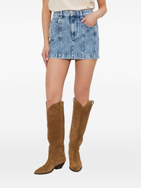 Juana five-pocket denim mini skirt Highlights - Light blue - Denim - Front pockets - Back patch pockets - Panelled construction - Button closure Imported Composition Cotton 100%, Calf Leather 100% Washing instructions Machine Wash