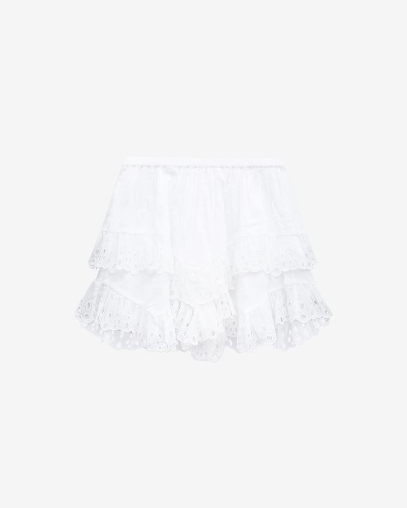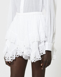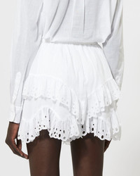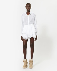 White cotton shorts Asymmetric ruffles on the front Reference: SH0089FA-A3J48E KADDY 100% Organic cotton FITTING ADVICE Fits true to size The model is wearing a size FR 38 and she is 1m77
