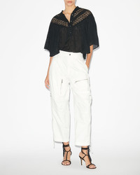 100% cotton Black cotton trousers Large patched zipped pockets on each side Side and back pockets Button and zip closure Belt loops Bottom leg zippers Style: PA0279FAB1G04E23EC KELVIN