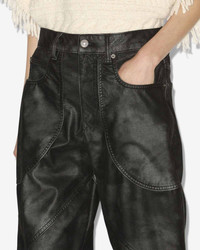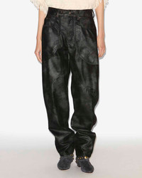 Vintage style faux leather pants Fitted waistband with loops Done up with a metal button and hidden zipper Topstitches and seams 5 classic pockets Leather label in back with an embossed "Isabel Marant" logo Metal rivets Silver-finish metal details Medium-rise waist Relaxed and tapered fit Style: PA0556FAC3B01E01BK KELVINA 63% polyurethane, 28% viscose, 5% other fibers, 4% polyamide