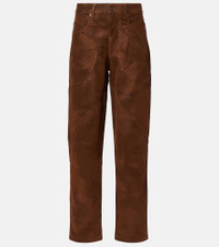 Hailing from Paris, Marant Etoile captures the art of French nonchalance through breezy yet polished staples. The Kelvina pants are crafted from faux leather and feature gold-tone hardware. Product Details - Material: 63% polyurethane, 28% viscose, 5% other fibres, 4% polyamide - Care instructions: machine wash at 30 degrees - Made in Tunisia - Designer color name: Tabacco - Item color: brown - Lining: 100% cotton - Closure: zip and button fastening - Pockets: five pockets - Hardware color: antique gold - Belt loops - Item number: P01074490 Size & Fit - True to size - Non-stretchy fabric - Tapered leg - The model seen in the picture is 178cm-5'10" and wearing a size FR 36