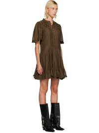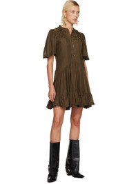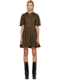 Semi-sheer organic cotton voile minidress. · Scalloped edges, gathering, and pleats throughout · Round neck · Eight-button placket · Tiered hem Supplier color: Dark khaki Body: 100% organic cotton. Trim: 100% polyester. Made in India 252599F052004
