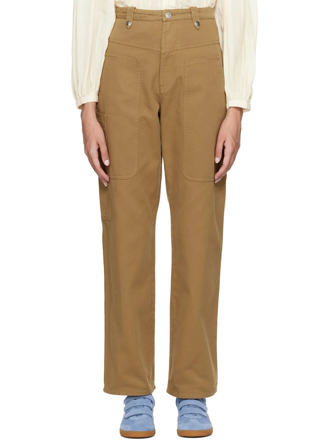 Cotton twill trousers. · Press-stud belt loops · Four-pocket styling · Zip-fly · Patch pocket at outseam · Logo-engraved silver-tone hardware Supplier color: Khaki 100% cotton. Made in Tunisia 242599F087002