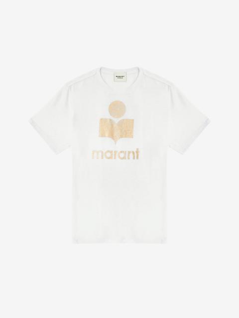 100% linen Linen T-shirt with short sleeves "Marant" logo print to the front Crew neck Straight hem Style: TS0001FBA1N10E01BK ZEWEL
