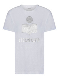 logo-print linen T-shirt Highlights - White - Round neck - Short sleeves - Straight hem Imported Composition Linen/Flax 100% Washing instructions Read Manufacturer Guidelines