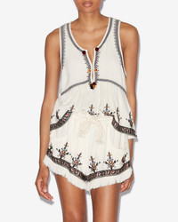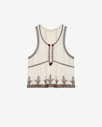 Gauze top with graphic style embroidery Round neckline Slit with hooks and pompoms Sleeveless Graphic style embroidery Lined chest and back Fitted at the waist Style: HT0556FAC1J10E23EC KOURTNEY 100% viscose